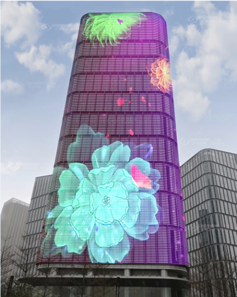 C-vent系列灯条屏往往应用在高空广告或高空装饰领域,因为产品超轻的重量,对载体的强度要求低,安装方便简单,这是常规显示屏产品无法比拟的天然优势。除此之外,C-vent16.67不仅以16.67mm间距能播放比常规灯条屏更清晰的画质外,还具有46%的通透率,从内往外看,仍具有很好的视野,可以说是楼宇安装的不二选择。