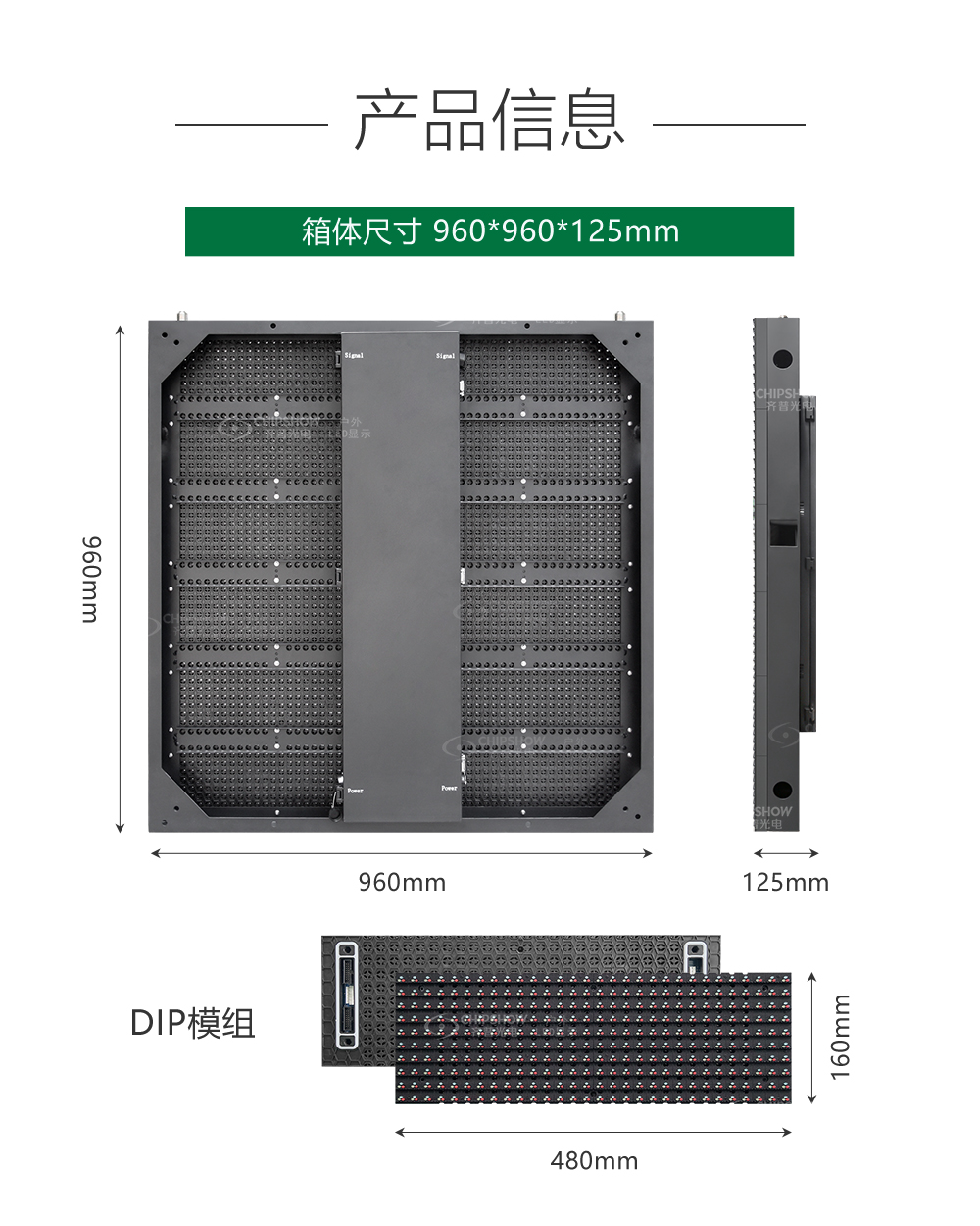 轻:模组镂空设计,节省胶量,有效减轻屏重,960mmX960mm箱体仅38KG。