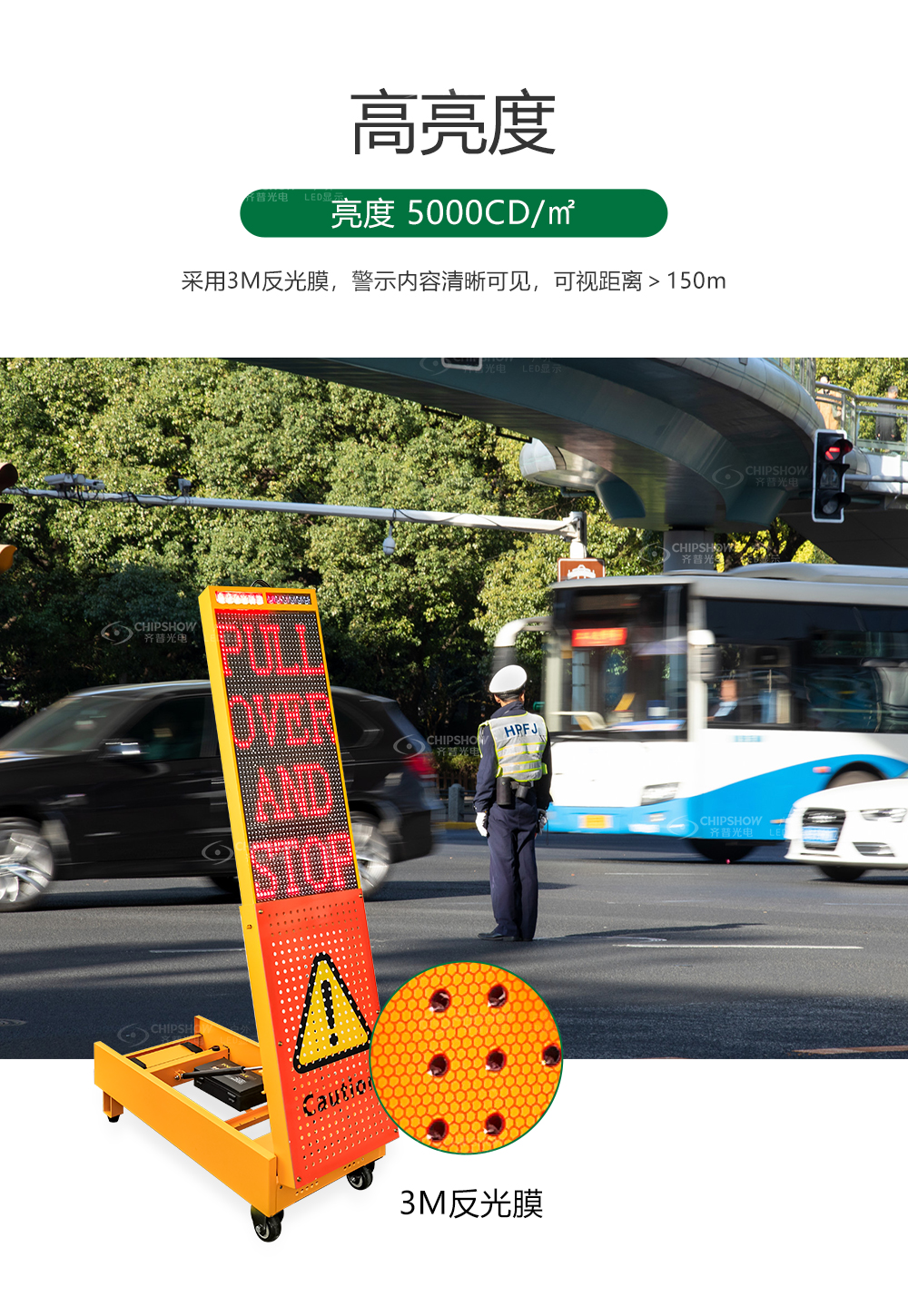 2. 超亮- 5000CD/㎡;可视距离>150米;