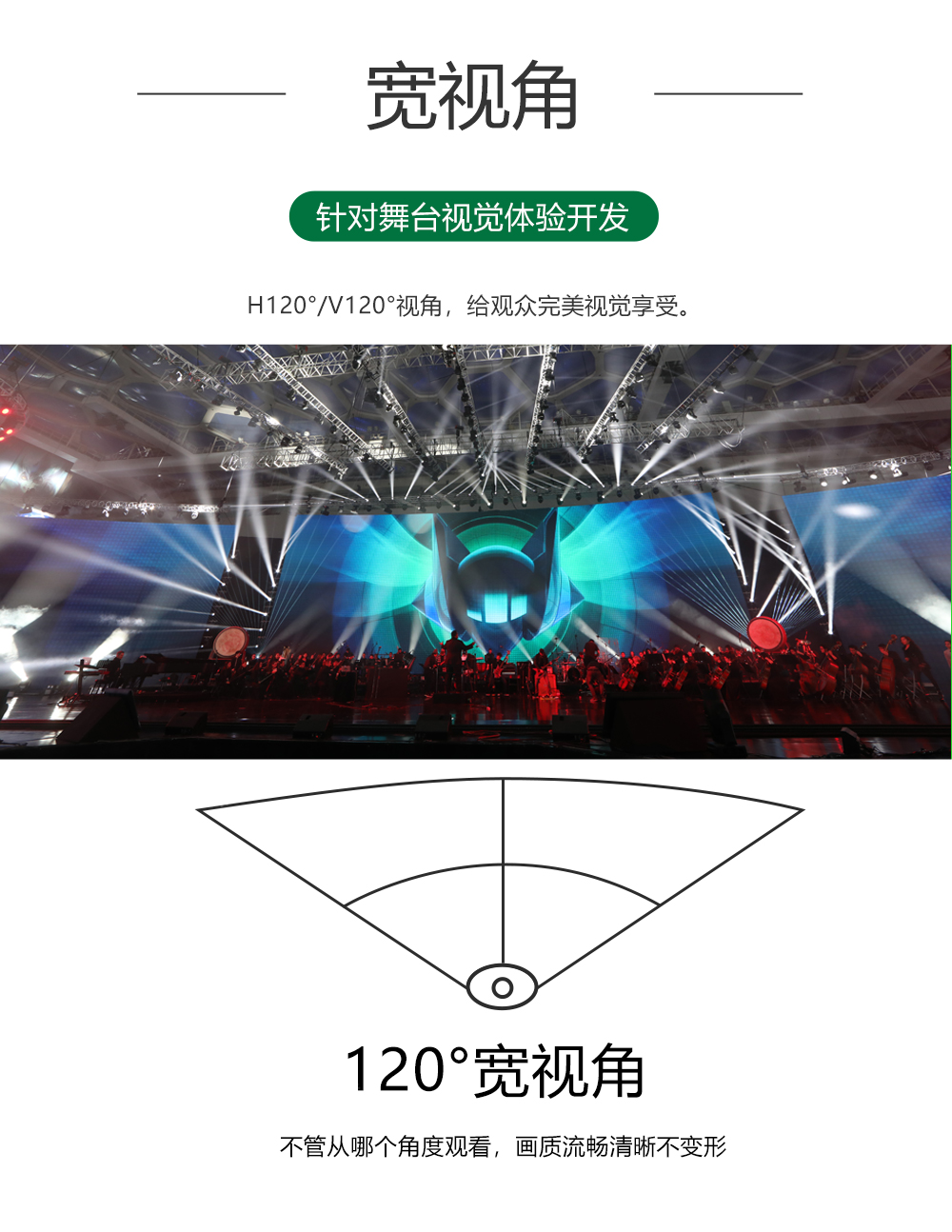 8、户外通配P1.9/2.6/2.97/3.9等像素间距,专业为会议,舞美,发布会等活动提供LED租赁显示整体解决方案。