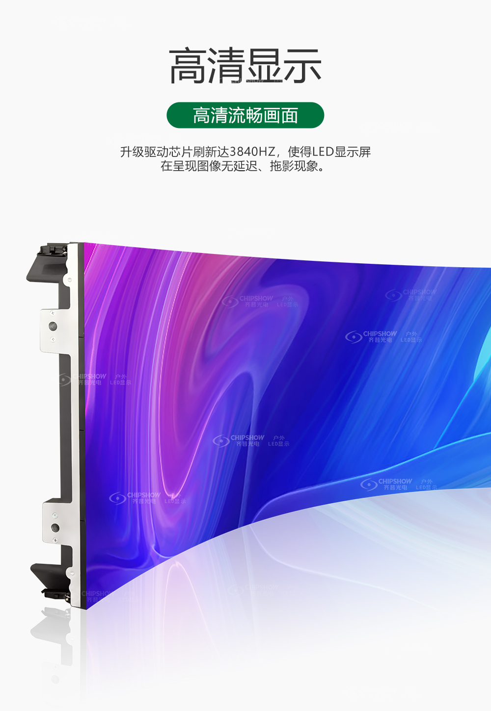 6 高清显示:色彩白平衡逐点校正,保证显示画面一致性和均匀性;