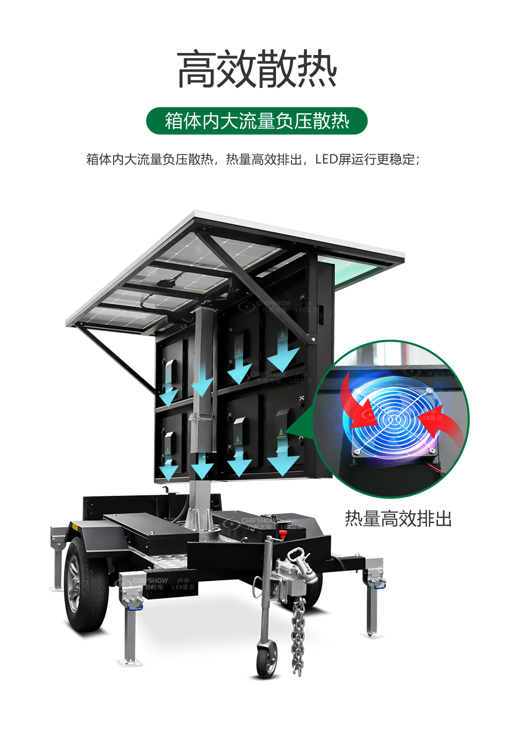 高效散热:箱体内大流量负压散热,热量高效排出,LED屏运行更稳定;