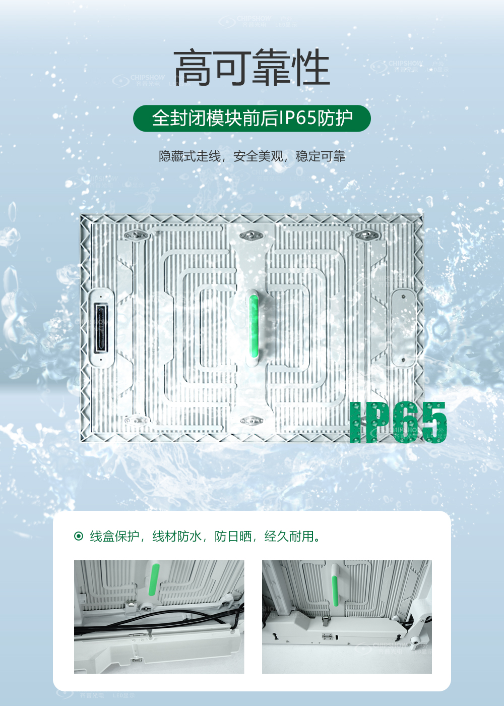 5、高可靠性:全封闭模块前后IP65防护;隐藏式走线,安全美观,稳定可靠。