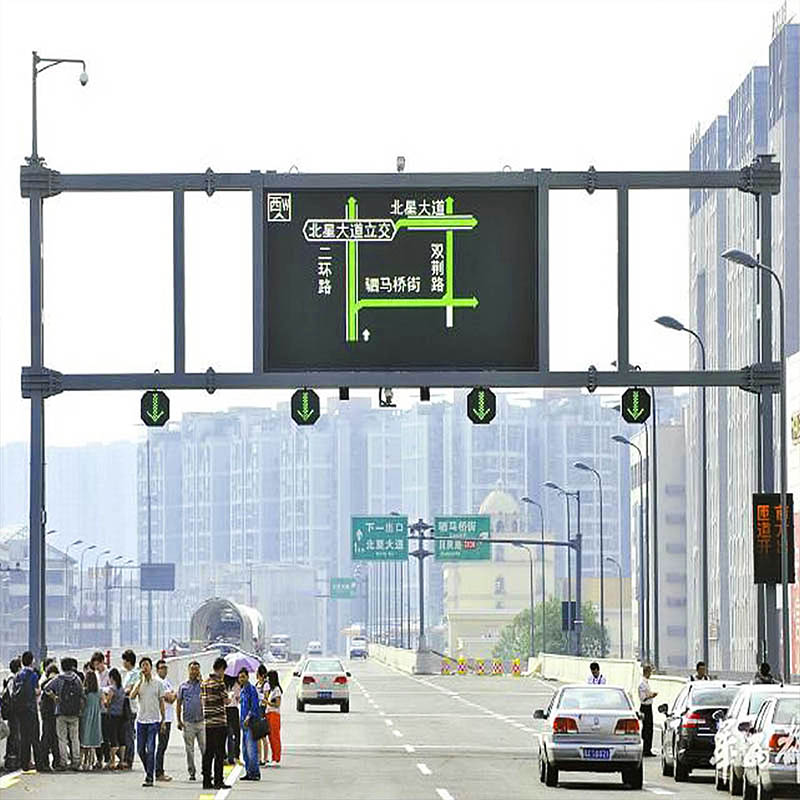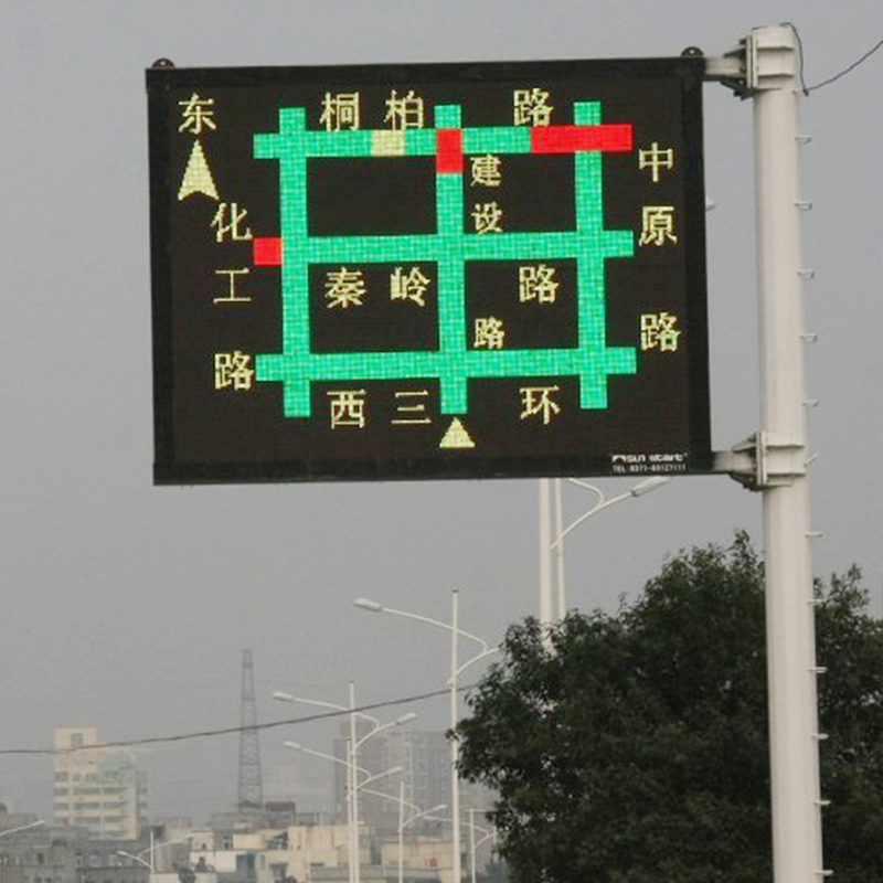 城市交通诱导屏是根据交管部门的具体使用要求实时在信息标志板上发布 交通状态信息。如道路封闭、突发事件、车道拥挤、停车泊位等信息。